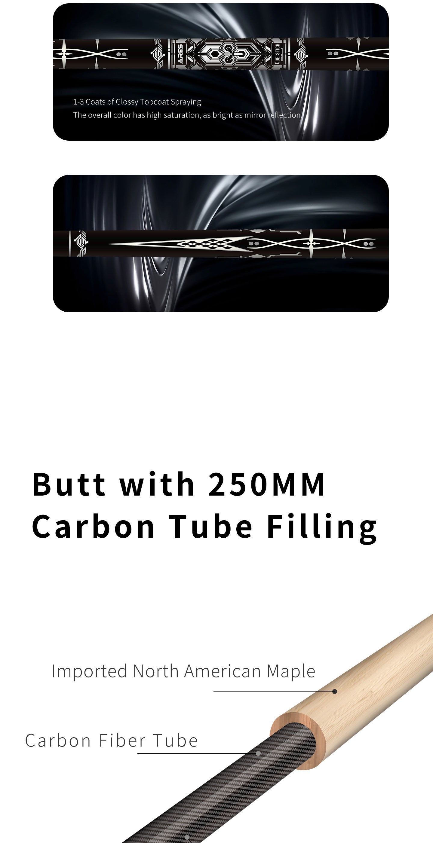 | Butt | Embedded 25cm Carbon Tube; German Digital Decals; Three-Layer Piano Paint. | 【Extreme Stability】: Inner carbon tube significantly boosts stability and energy efficiency. Exquisite finish is fade and chip resistant. |
